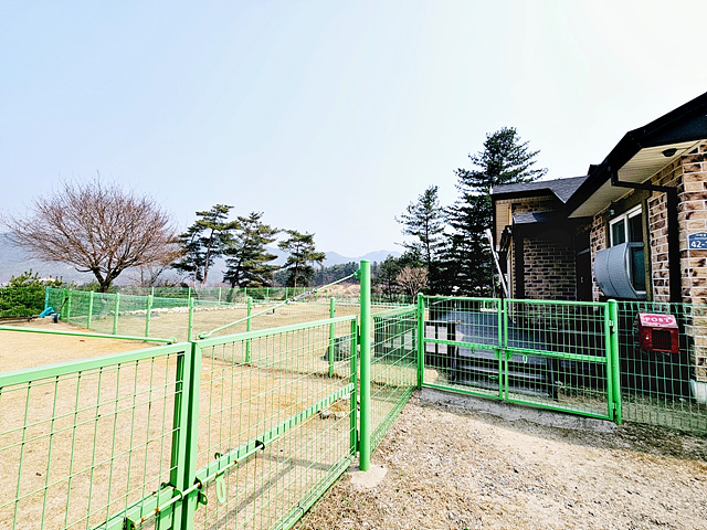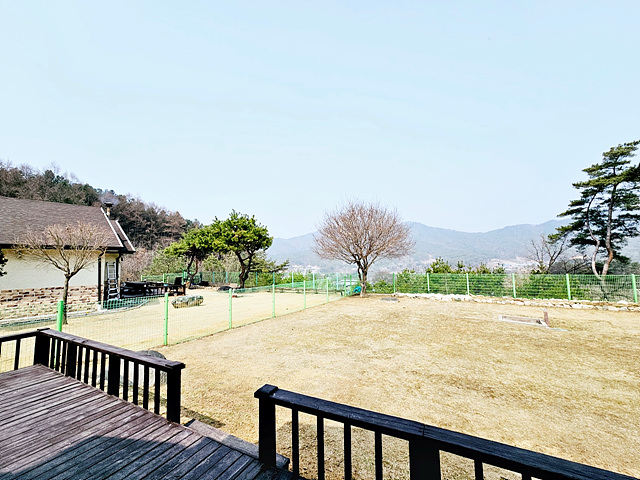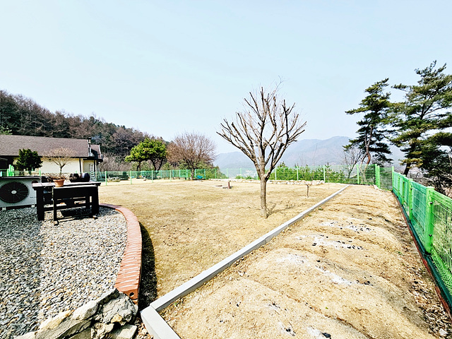- 경계 철재휀스, 정원수, 텃밭, 잔디, 데크 야외주차, 야외 수돗가