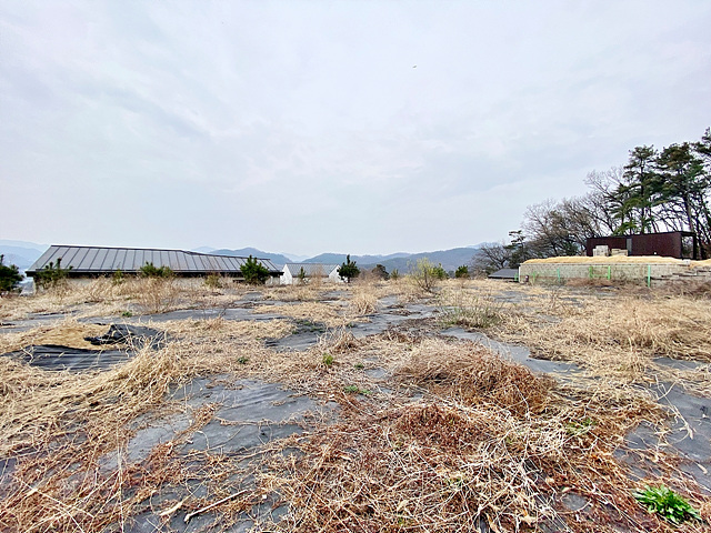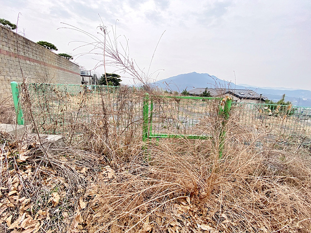 수풀 자라지 않게 제초 매트 설치해 뒀다고 함 수목 몇 그루 식재 되어 있음