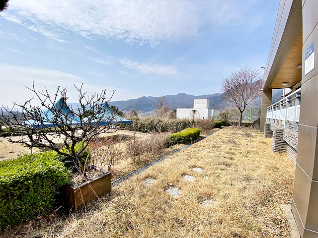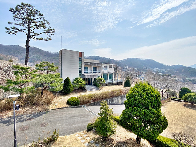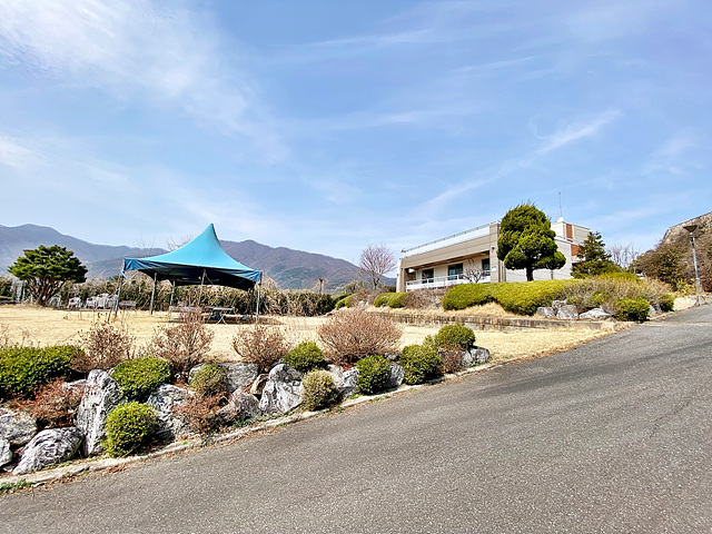 - 남북으로 긴 형태의 토지로 전체적으로 완만한 경사로로 이루어져있음 남측 주출입구는 경비실과 아치형 접이식 바리케이트 설치되어 있음 북측 별관동의 경우 북쪽 접한도로 통해서 주차박스로 바로 진입 가능함 건물 위치한 곳은 경계조경 및 잔디마당+디딤석으로 되어 있으며, 그 외 공간은 대부분 완만한 완경사 조경으로 이루어져있고 숙소동 앞 공간만 평탄지 잔디마당으로 외부 행사 사용이 가능함