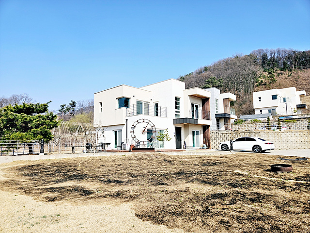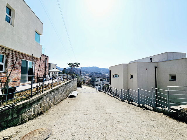 - 마을인근 단지내 상단에 위치한 주택 단지내 비슷한 양식의 주택 여러채 있음 2차선도로 약 800M, 버스정류장 1KM 강하면사무소 및 강하체육공원 2.7KM |