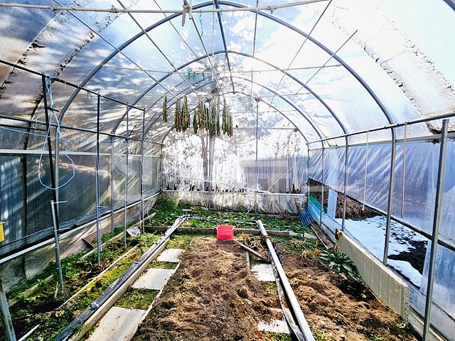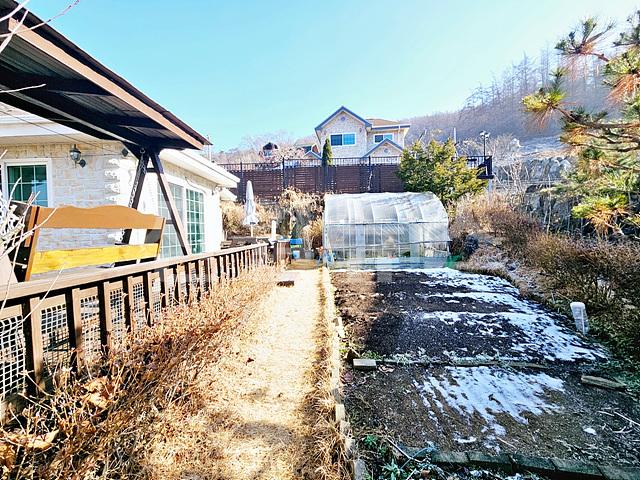우측 소형비닐하우스, 텃밭공간, 야외 가마솥, 야외 수돗가