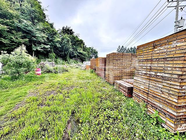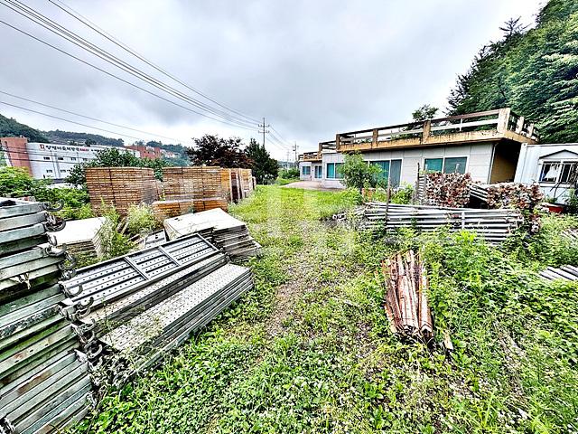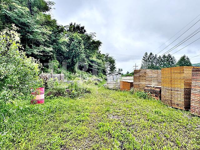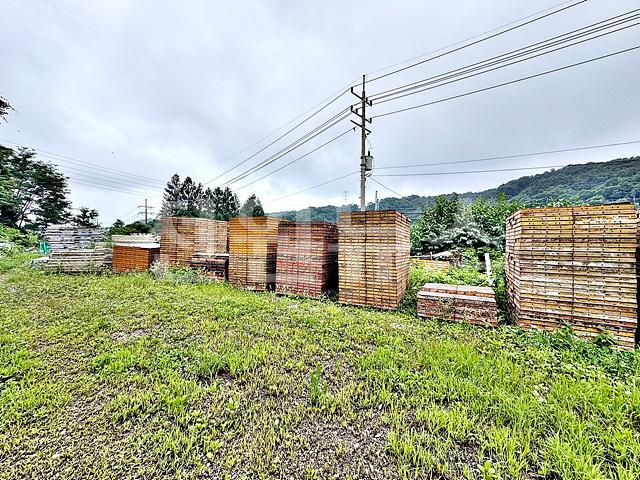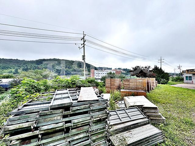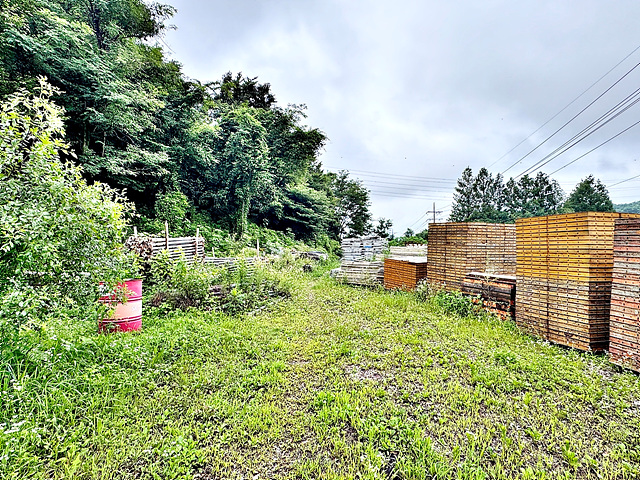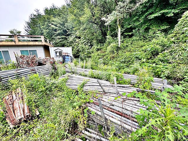 벌목 및 평탄화 되어있으며 건축자재 쌓여있음