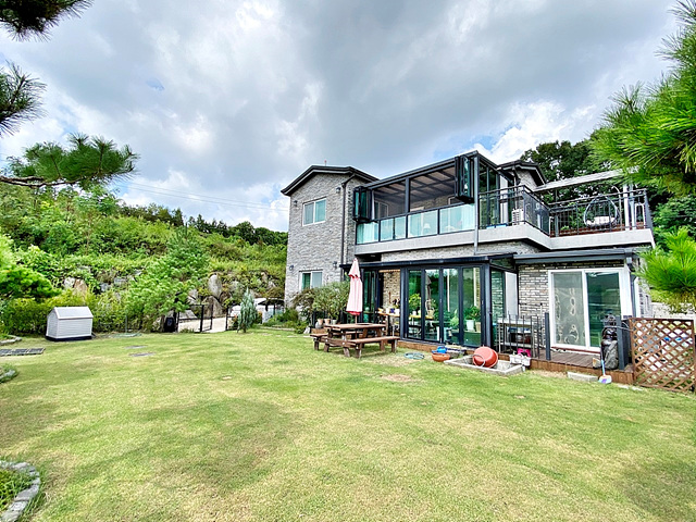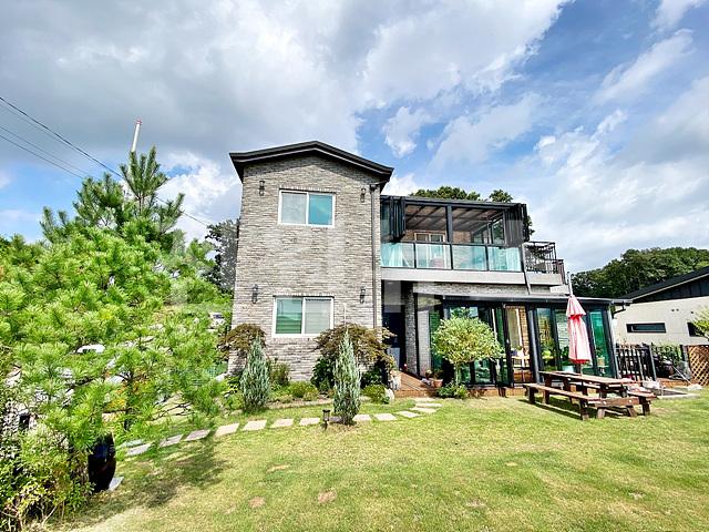 옵션: 에어컨 총4대(거실 스탠드1, 각방 벽걸이3), 붙박이장,식기섹척기,야외테이블,옥상의 평상,2층 썬룸네 화목난로