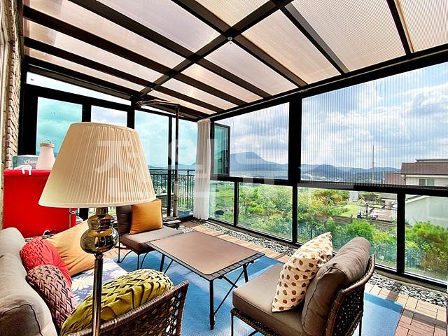 옥외는 태양광 패널 설치하고 그 아래 평상과 그네 의자 설치되었으며, 탁 트인 전망 나옴