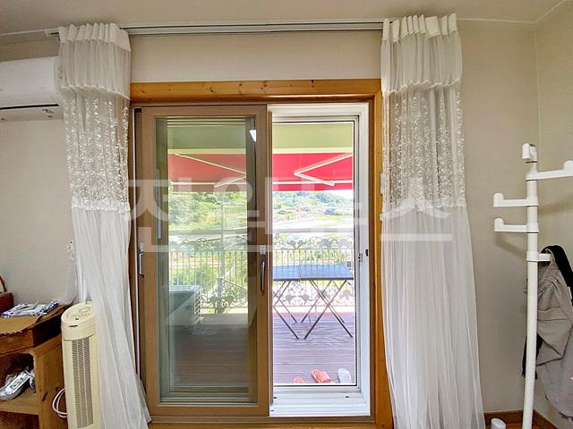 거실 앞 목재 데크에 어닝 설치되어 있으며,