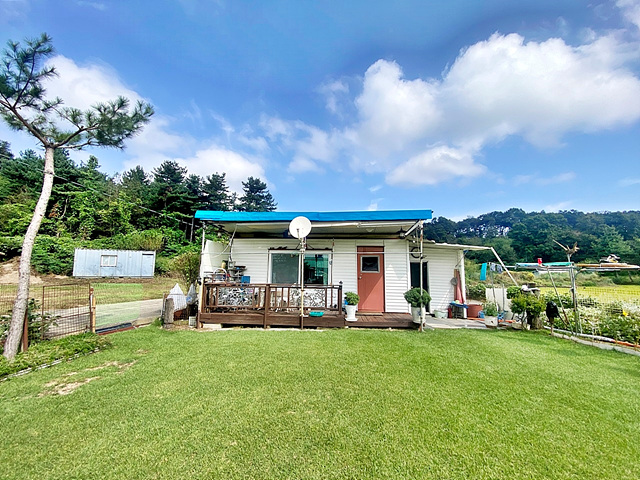 - 앞마당 잔디,디딤석, 목재데크