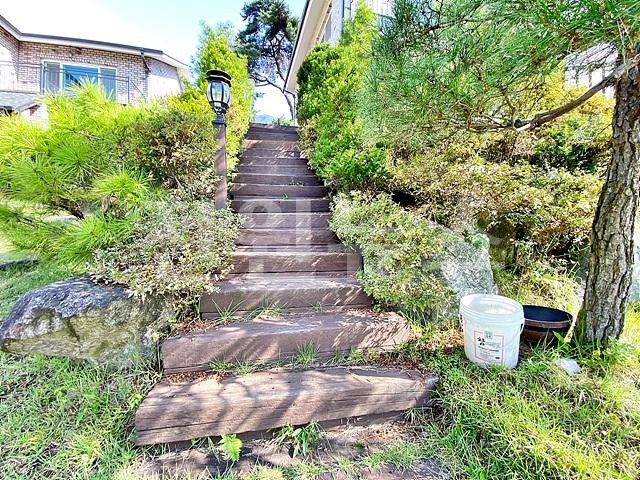 - 잔디마당, 디딤석, 조경수