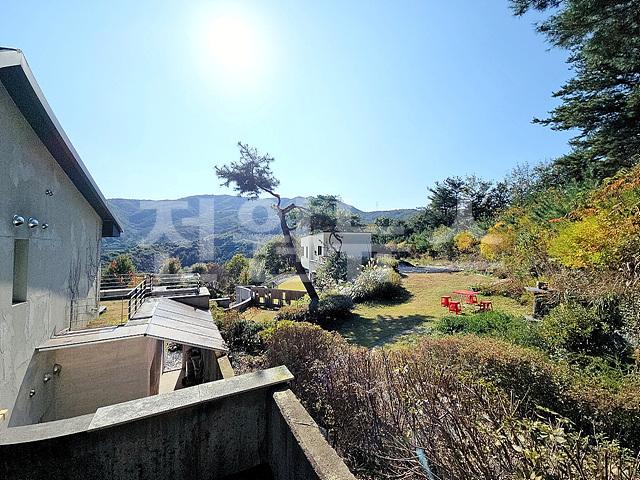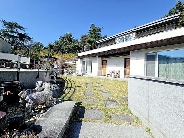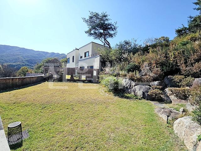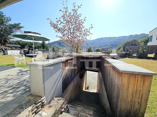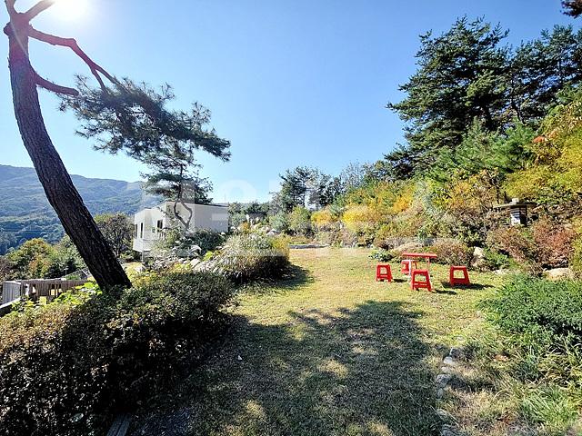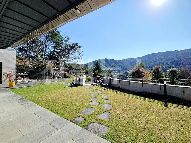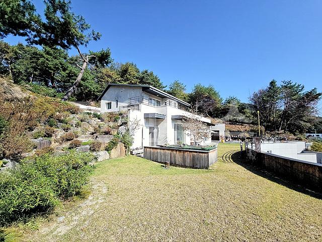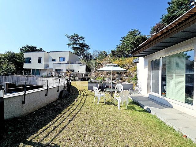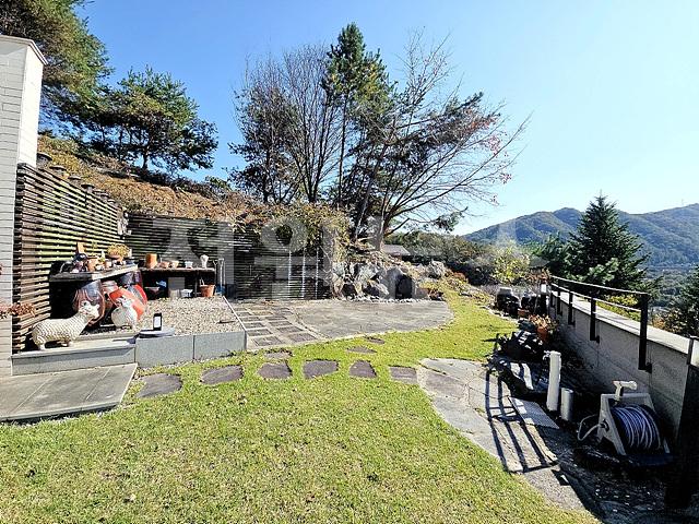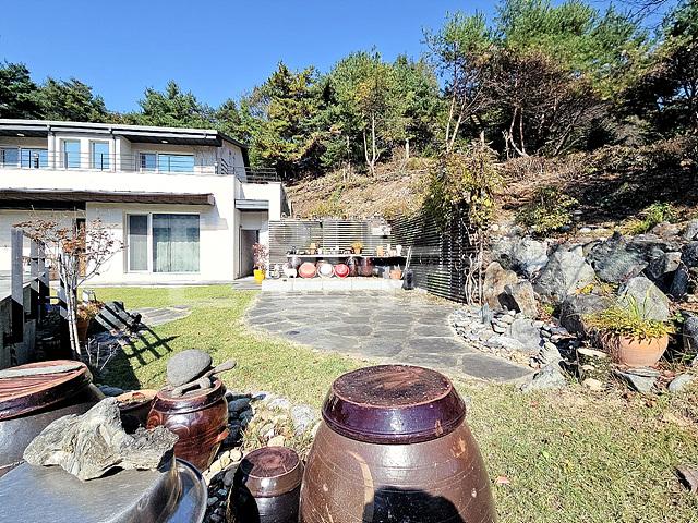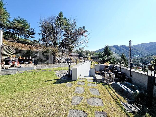 - 2단 지형이며 1층 앞마당 평탄지 잔디정원