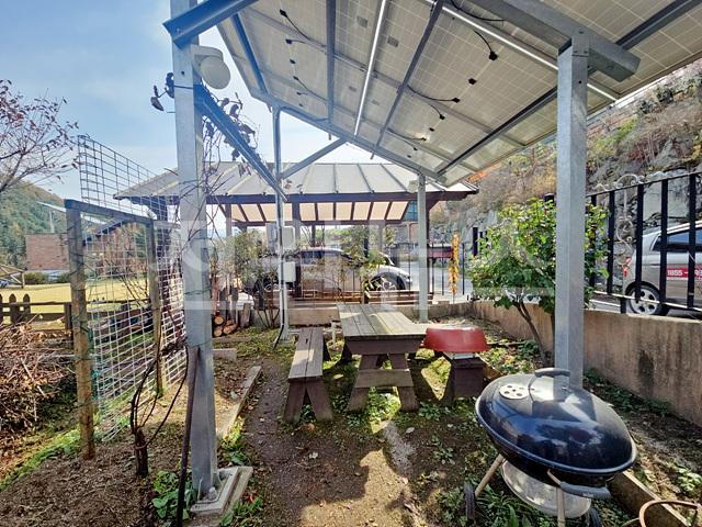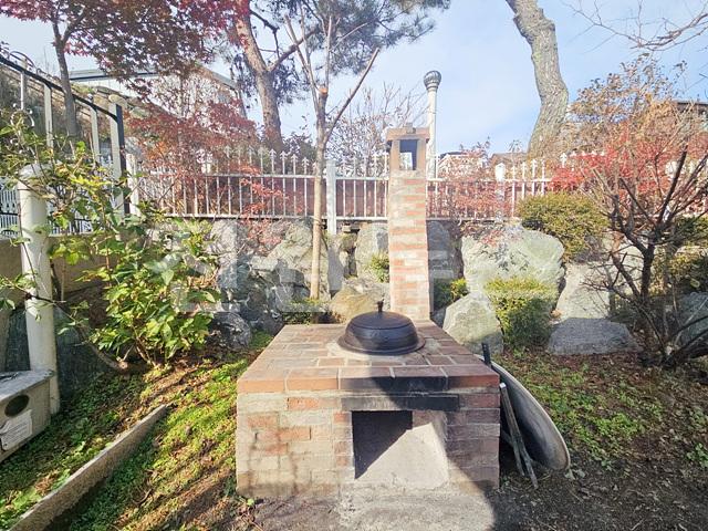야외 가마솥 바베큐장, 경계 울타리 설치되어 있음