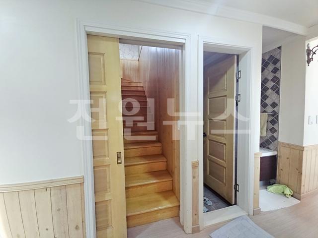 2층 복도식 거실 천장형 계단이며 평수는 대략 5~6평 되어보임