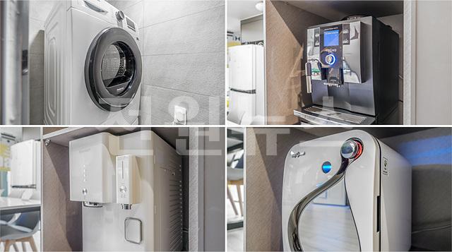 실내 놀이터, 침대, 세탁기, 건조기, 의류관리기, 에어컨, 얼음정수기, 커피머신,