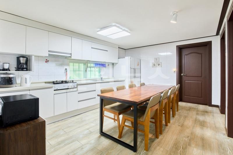 본관1층 8~12인실 약 50평 : 방3개, 거실, 주방, 욕실 2개, 풀옵션