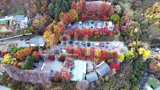 산속 소나무 임야에 둘러쌓인 포란형 지형