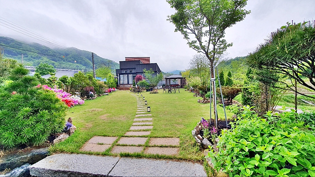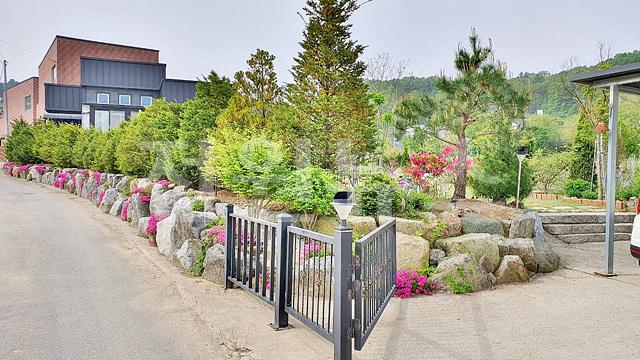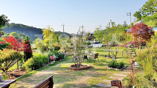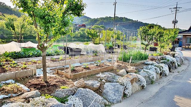 - 잔디마당, 디딤석, 경계조경수, 유실수, 텃밭