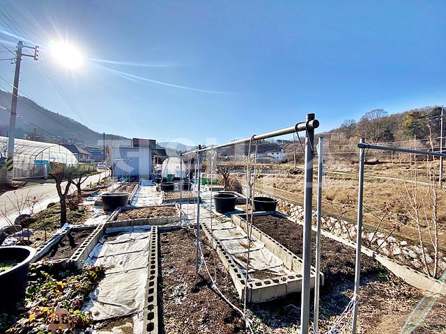 대문 기준으로 주택부지와 텃밭부지 좌우로 나눠져있음