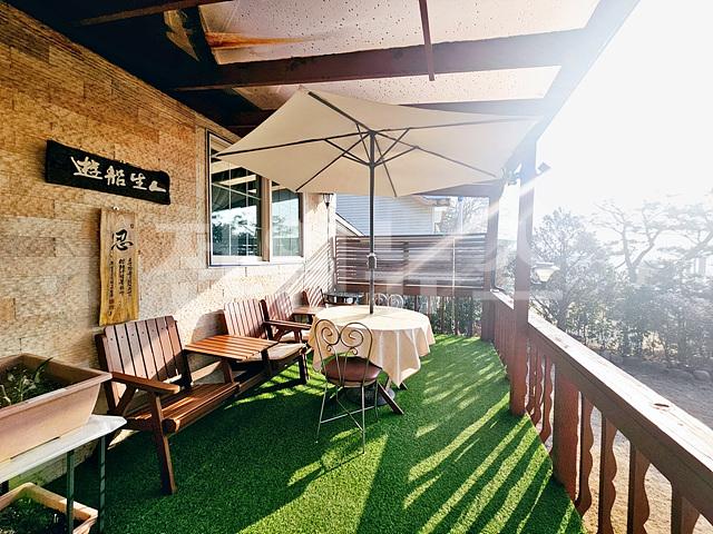 정원 한쪽 단풍나무아래에 경치를 바라보는 테이블 공간있음