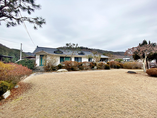 - 잔디마당, 디딤석, 소나무 등 조경수, 경계조경, 정자, 창고, 돌담, 대문