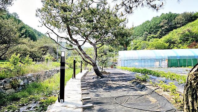 곳곳에 유실수 식재해놓았으며, 필지 동쪽 구거라인에 맞춰 정자 설치해두심