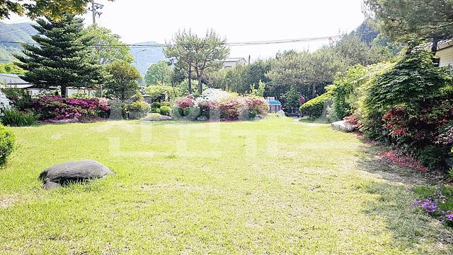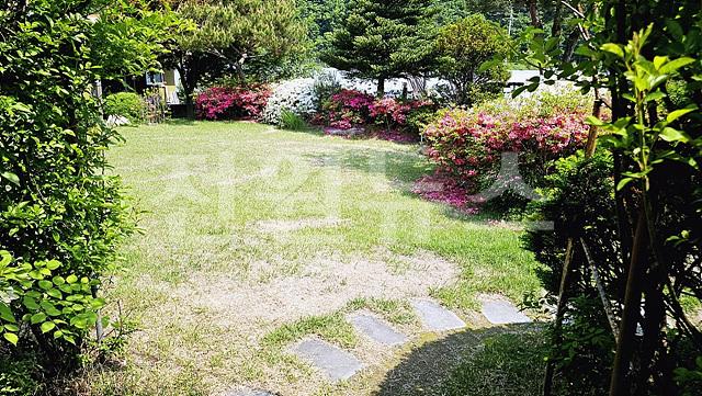 잔디마당 2곳에 넓게 있으며, 마당 경계로 조경수 관리가 잘 된 편임