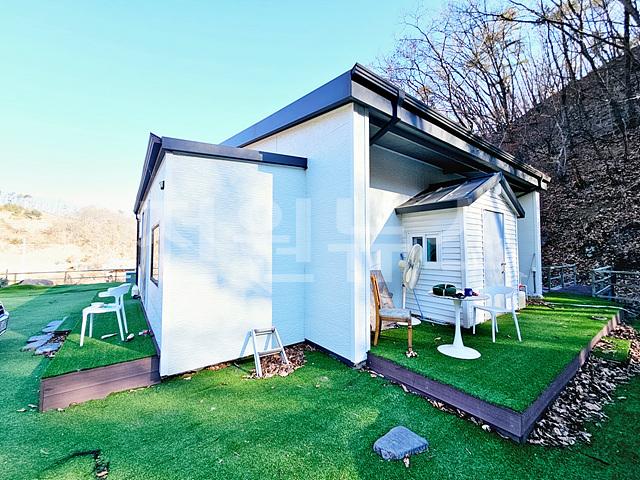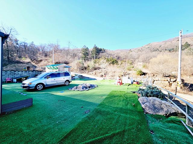 - 마당 전체에 인공잔디매트를 깔아놓으셨음
