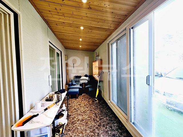 현관 데크위 지붕시공하셔서 썬룸내부공간으로 사용중