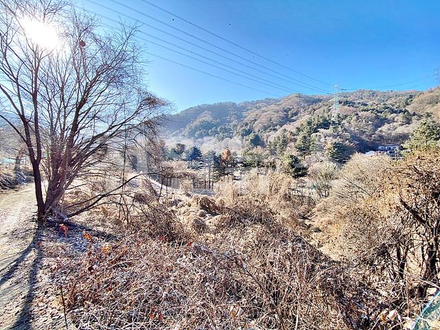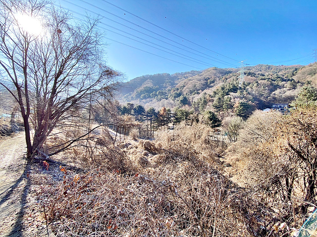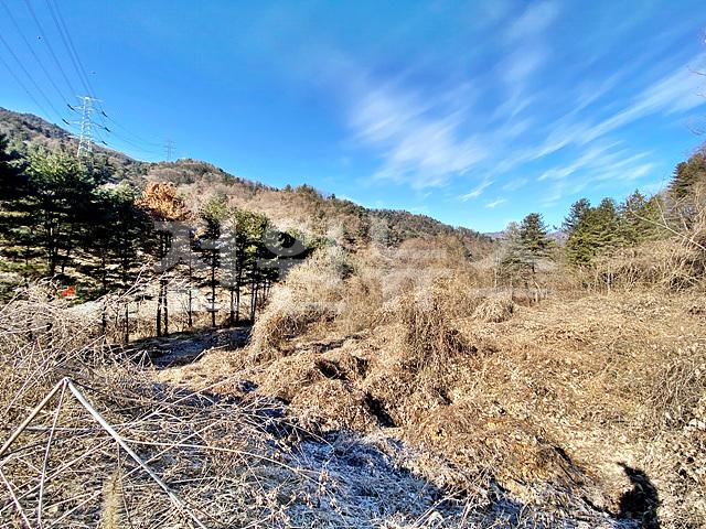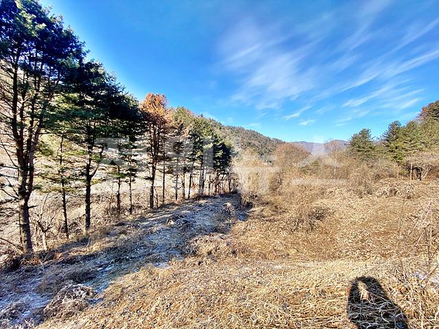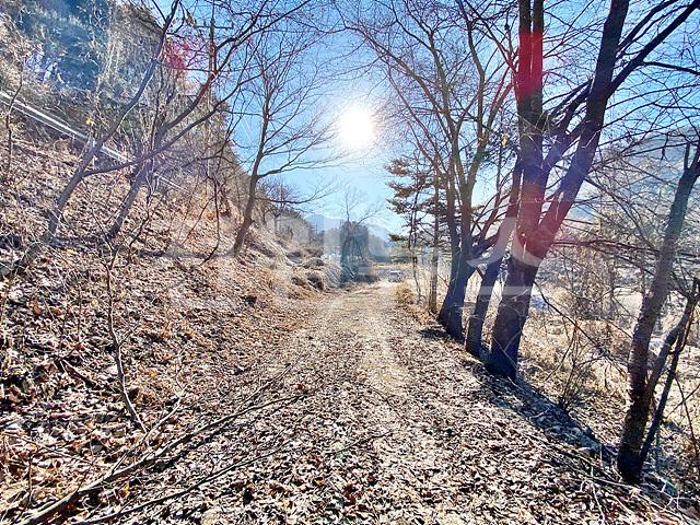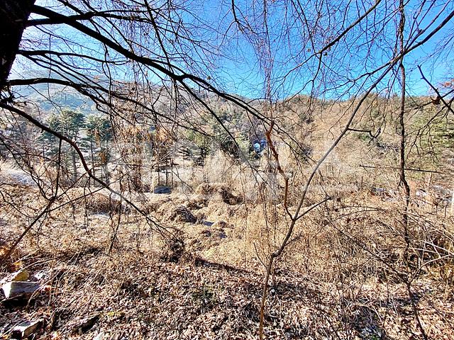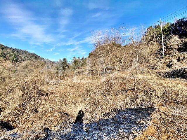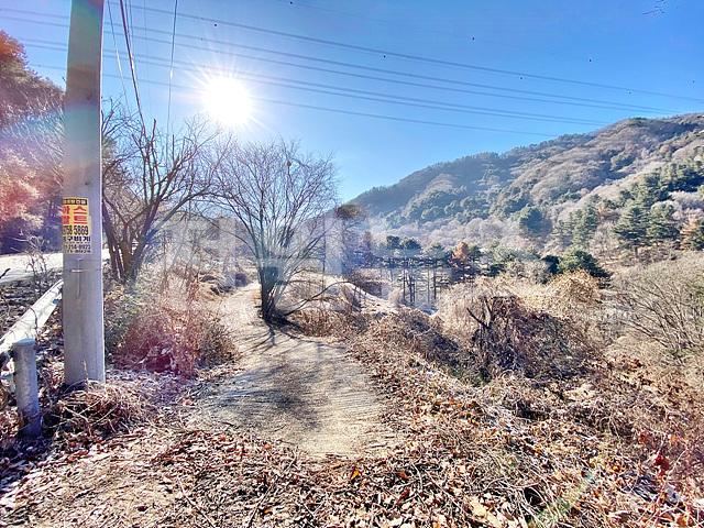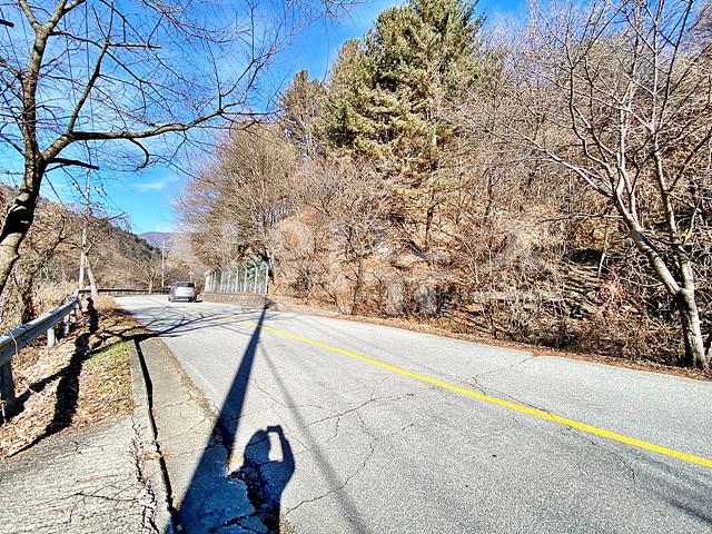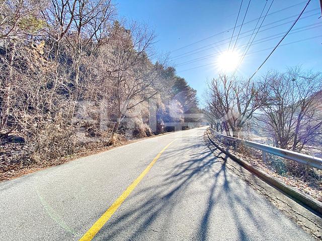 - 뒤쪽 2차선도로와 정면 계곡 사이에 위치한 토지