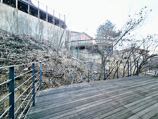 1.5층 야외데크와 단차를 맞춰서 자연 마당으로 쓰이고 있음