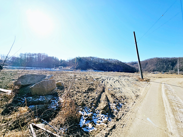 - 남서향/ 마을회관과 쉼터, 버스정류장이 있는 도로변 건물로 트인 조망