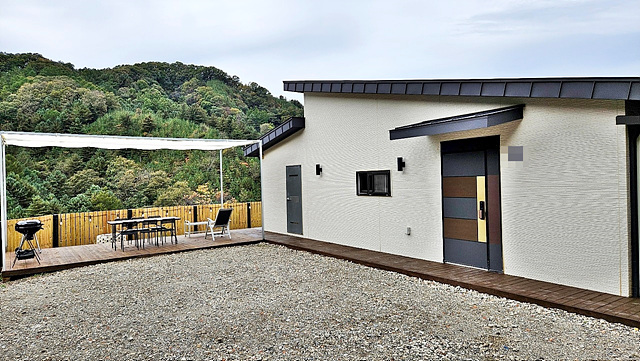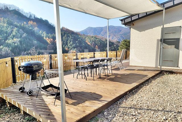-일부 자갈마당, 목재 데크+난간 설치, 데이블&바베규장