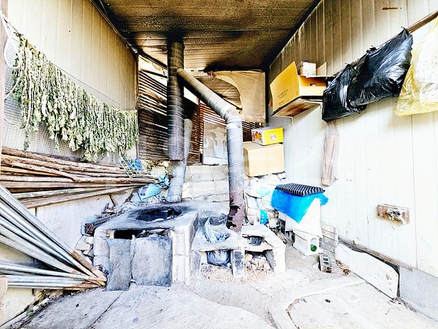 창고 좌측끝에 가마솥 화롯불 있음, 평상