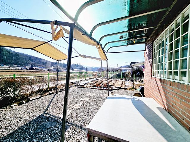 본채와 좌측 창고사이공간에 지붕시공하여 야외수전공간을 다용도실처럼 사용중