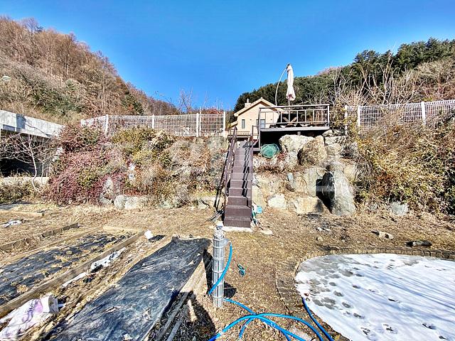 2단으로 단차 있으며 윗단은 주택과 마당,