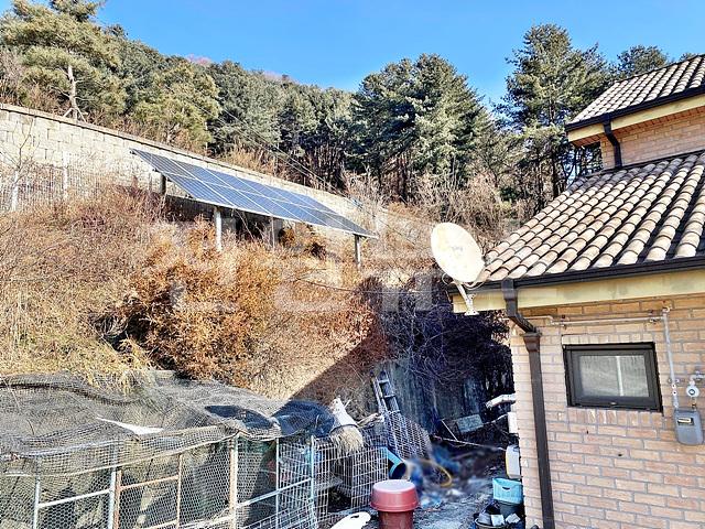 주택 뒷부분 범면에 태양광 설치되어 있음