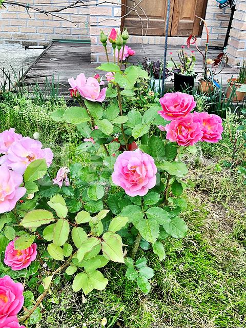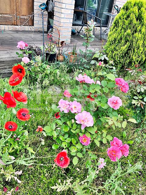 - 석재데크, 잔디마당, 디딤석, 경계조경, 꽃나무(장미 등/ 보내주신 사진 첨부함)