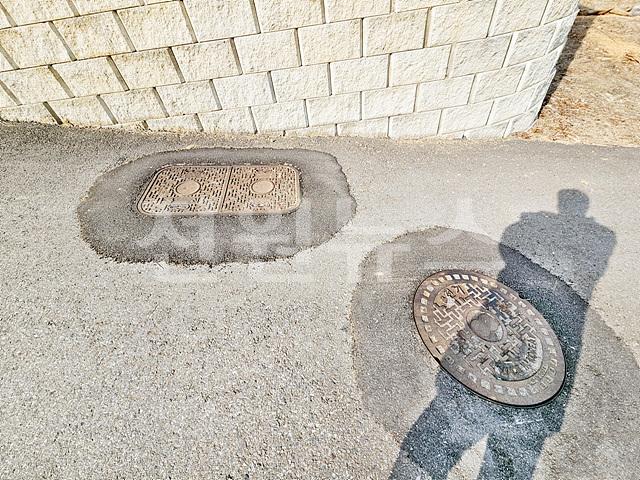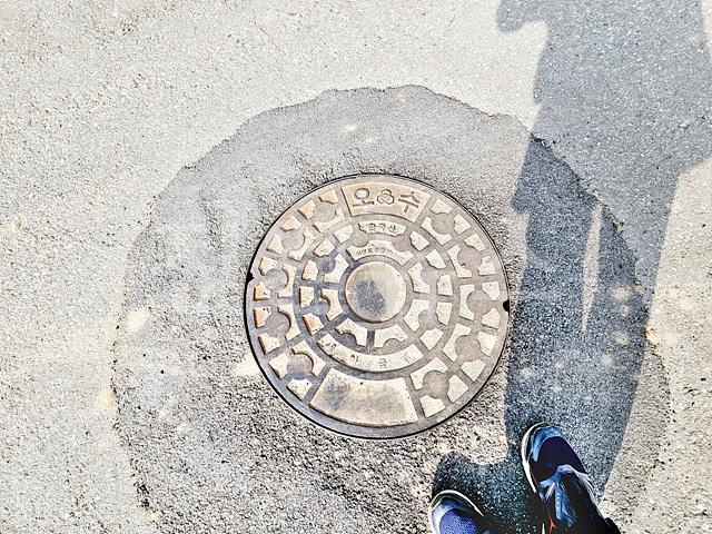도로에 오수 맨홀 있음