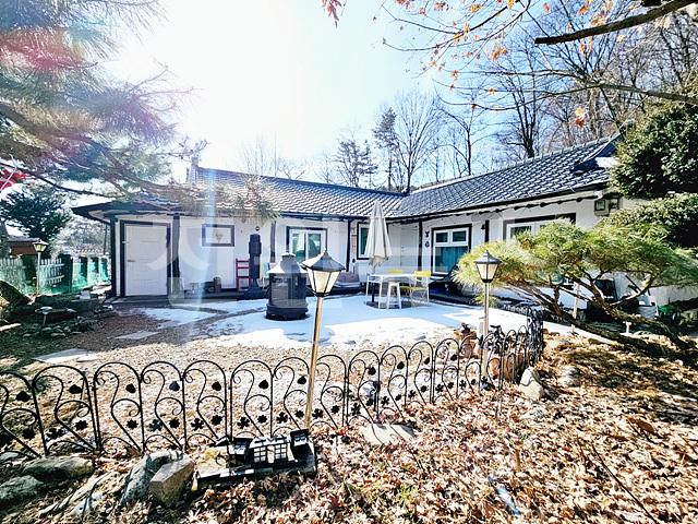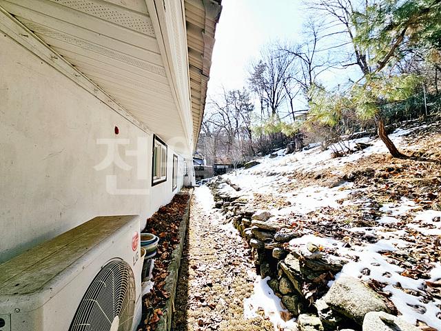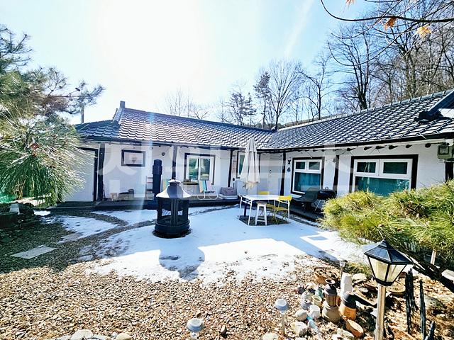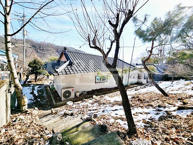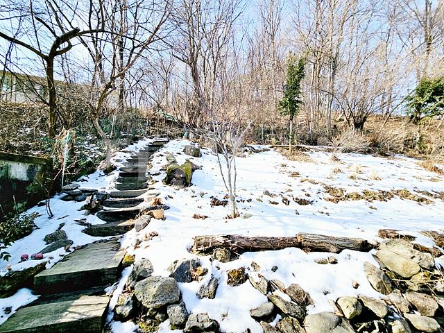 - 전체 2단 지형의 필지 ( 주택부지 및 정원조경, 뒷마당 완경사 자연 지형)