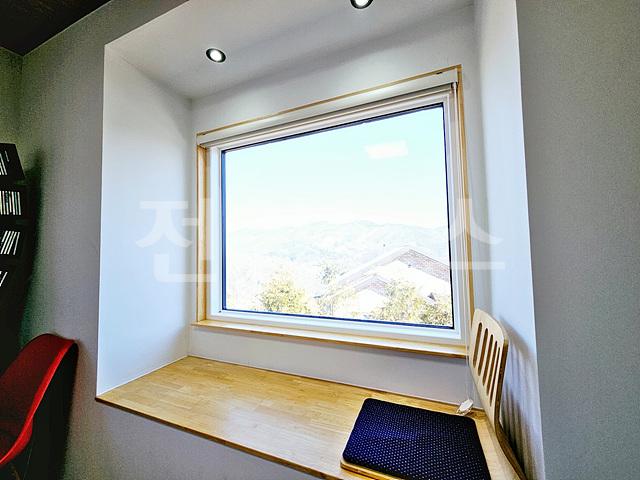 한쪽방 창가쪽에 창가에 앉아서 경치를 볼수있게 창가좌식공간 있음
