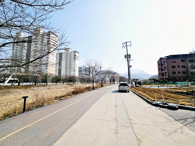 정면 산책로 하천을 앞에두고 뒤쪽으로 임야 접해있음