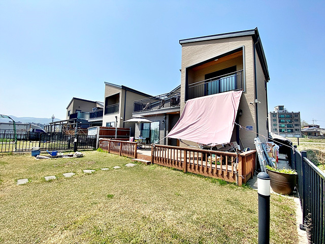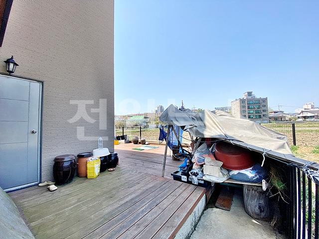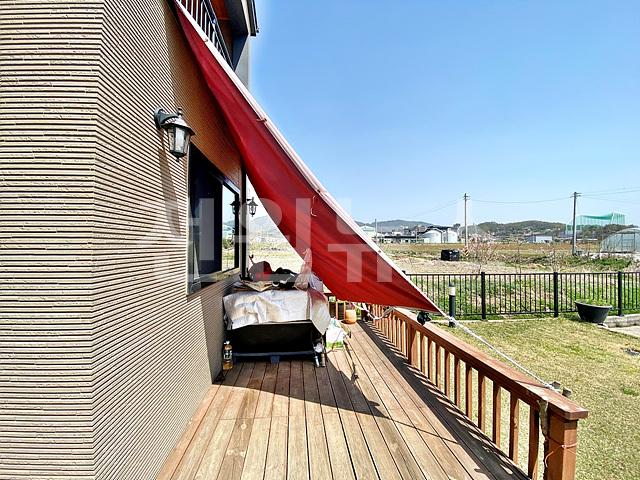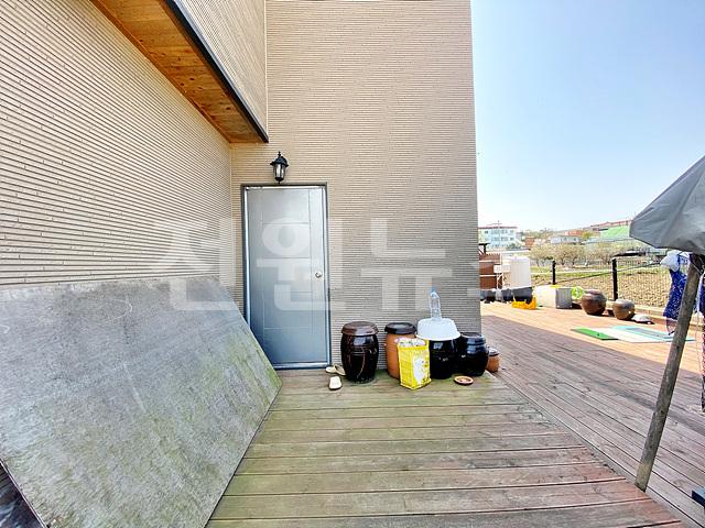 -잔디마당, 디딤석, 목재 테크(주택 앞/뒤)+난간, 텃밭, 야외 수도