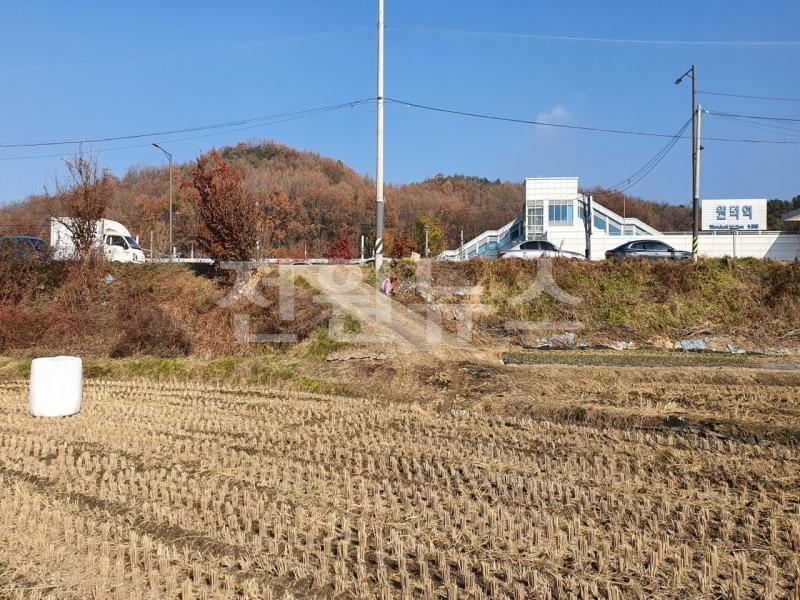 토지상태 | 원덕역 입구 바로 앞의 토지로,현재 경작중에 있는 토지임. 경작중에 있어 전체적으로 평탄화가 되어 있지만, 진입 도로 기준으로 본 필지가 낮은 형상이며 추후 성토 등의 작업이 필요해 보임. 추읍산 등산로를 이용하는 등산객이 많이 찾는 역으로 상가용지 등으로 적합해 보임. |