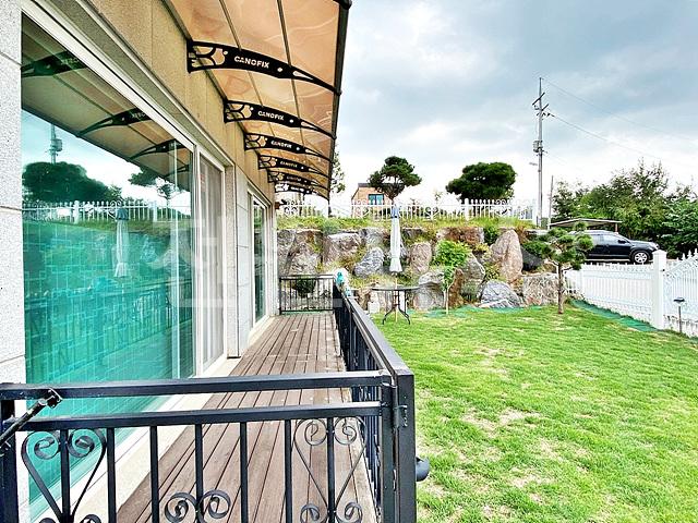 1층과 2층의 주택 앞면으로 테라스로 연결되며, 비가림막 설치되어 있음