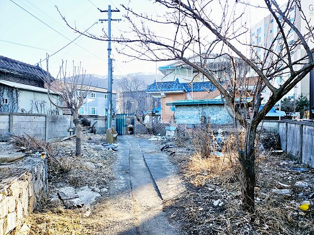 골목길이 막혀 현재는 6m도로쪽으로 대문을 설치하여