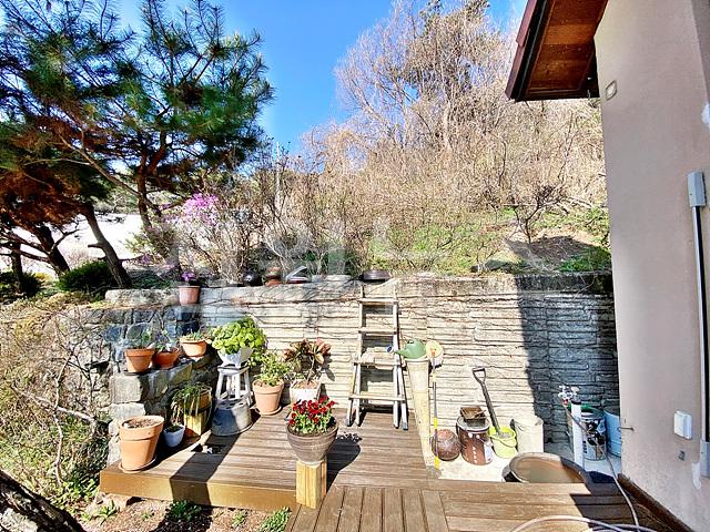 주택 전면과 서측에 목재 데크+난간 설치하고 야외 테이블有