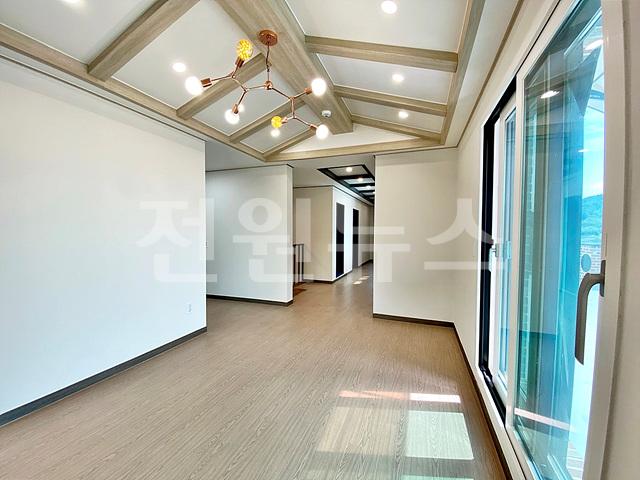 * 2층 거실은 박공지붕 형태를 살려 층고가 높고 개방감이 있음