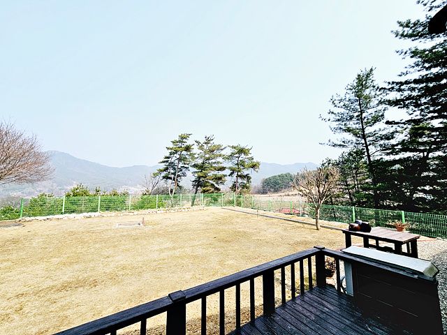 - 경계 철재휀스, 정원수, 텃밭, 잔디, 데크 야외주차, 야외 수돗가