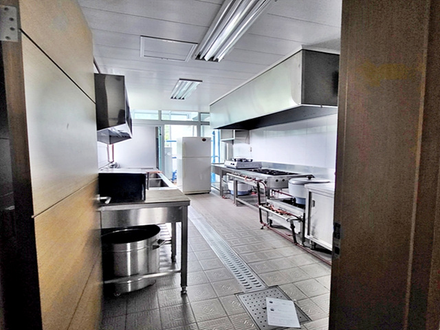 강의실로 사용되는 대강당과 식당용 주방설비되어 있는 주방, 로비 한쪽으로는 남/여 분리된 화장실 있음