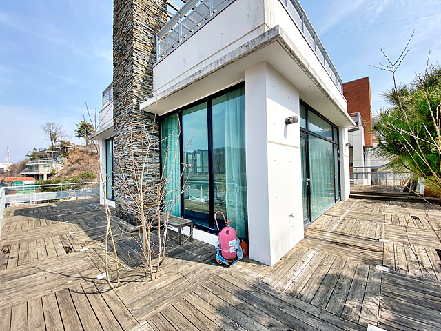 별관동은 필지 가장 상단 높은곳에 위치하고 있음 1층 거실 기준 남향+서향으로 창이있어 강조망 우수함 주방과 식당 사이 간이벽 있으며, 식당 측면으로 폴딩도어 연결된 썬룸 있음 건물 외부 목재데크공간 넓게 있으며, 일부 낡아서 수리 필요함 북측 접한도로에서 지하 주차박스 바로 진입 가능함