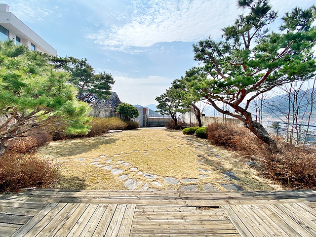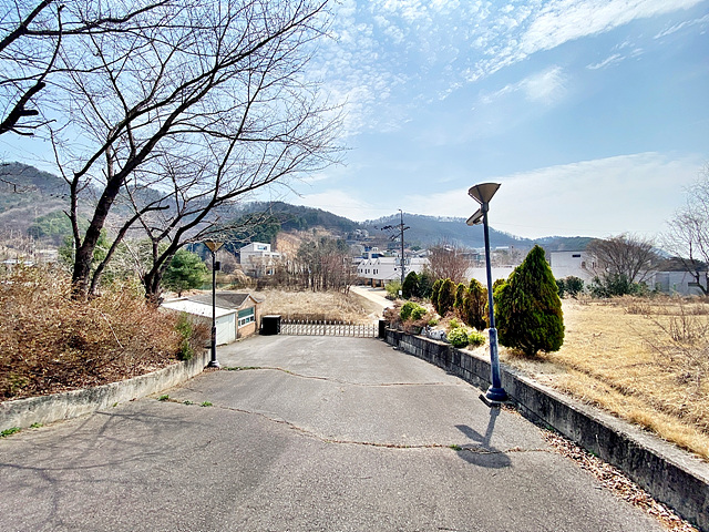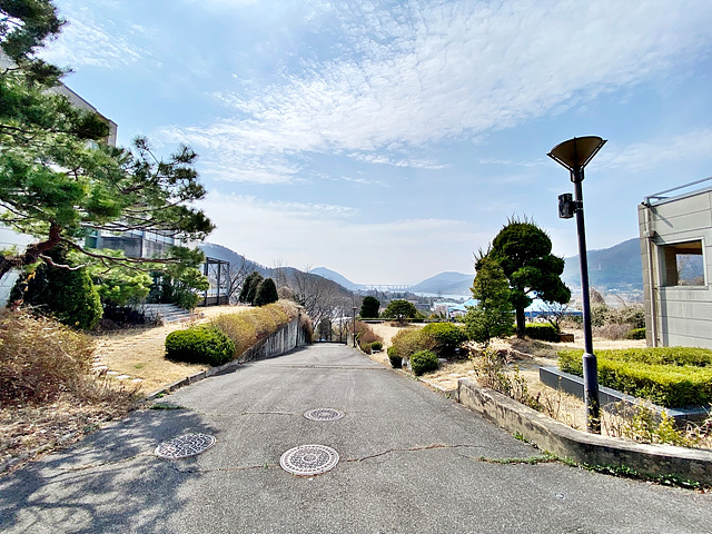 - 남북으로 긴 형태의 토지로 전체적으로 완만한 경사로로 이루어져있음 남측 주출입구는 경비실과 아치형 접이식 바리케이트 설치되어 있음 북측 별관동의 경우 북쪽 접한도로 통해서 주차박스로 바로 진입 가능함 건물 위치한 곳은 경계조경 및 잔디마당+디딤석으로 되어 있으며, 그 외 공간은 대부분 완만한 완경사 조경으로 이루어져있고 숙소동 앞 공간만 평탄지 잔디마당으로 외부 행사 사용이 가능함