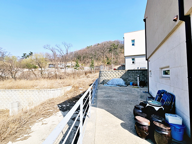 - 마을인근 단지내 상단에 위치한 주택 단지내 비슷한 양식의 주택 여러채 있음 2차선도로 약 800M, 버스정류장 1KM 강하면사무소 및 강하체육공원 2.7KM |