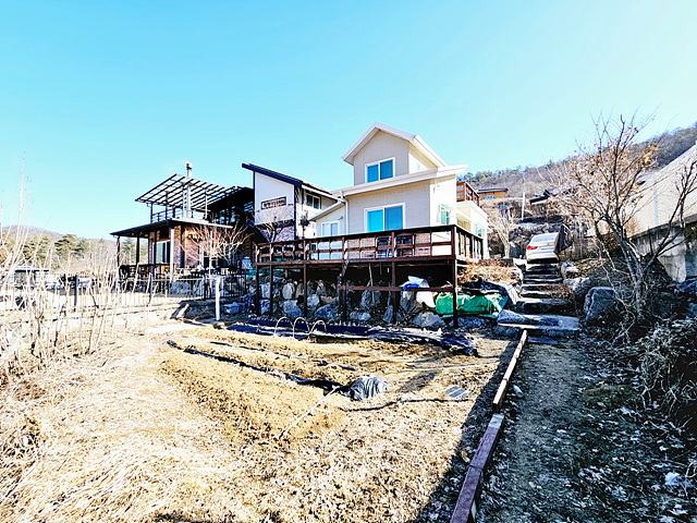 - 2단 지형으로 나눠진 토목이며 아래쪽으로 텃밭 있음